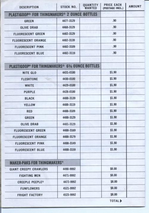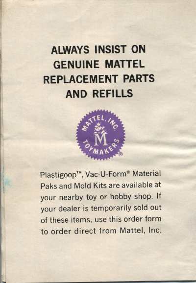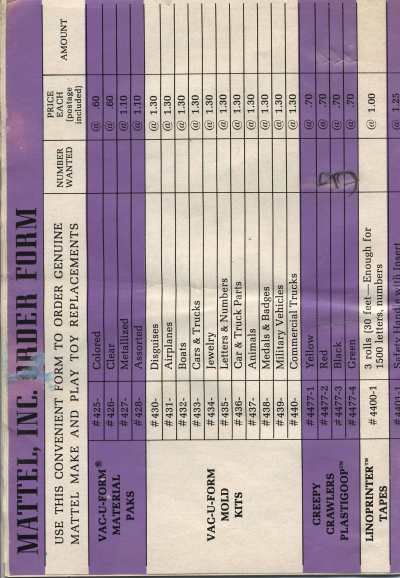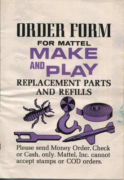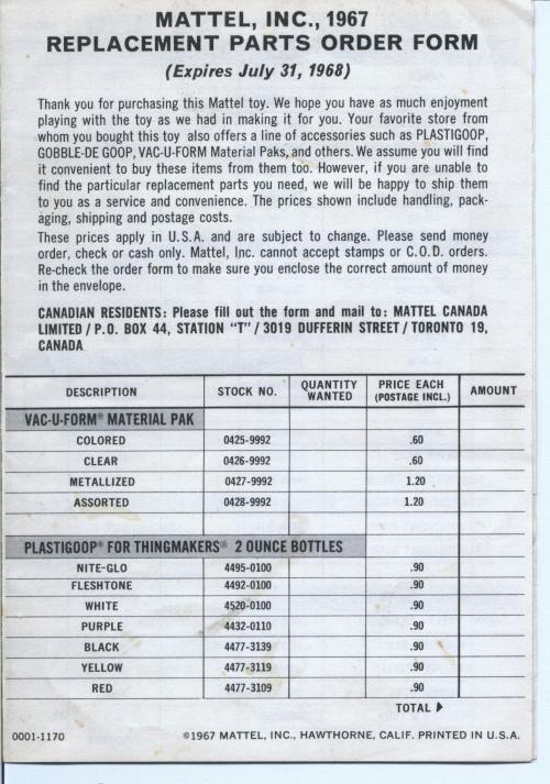 0001-1170 01 | Replacement Parts Order Form 01 | 1967 | Mattel |