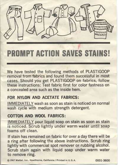 0001-3600 | prompt action saves stains insert | 1967 | Mattel |