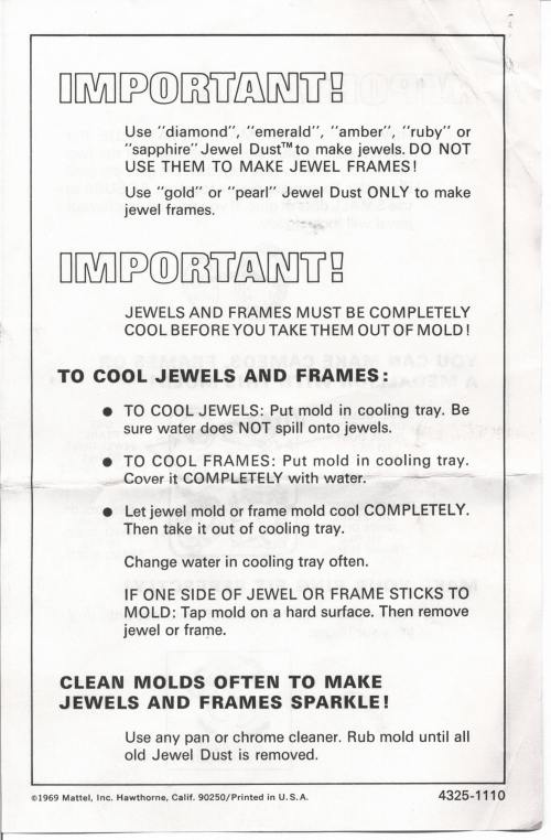 4325-0920 01 | Jillions of Jewels - instructions page 01 | 1969 | Mattel |