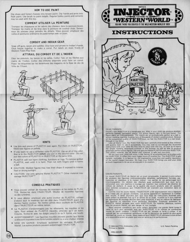 4350-0920 page 1 | Injector Western World 435D instructions page 1 | 1969 | Mattel |