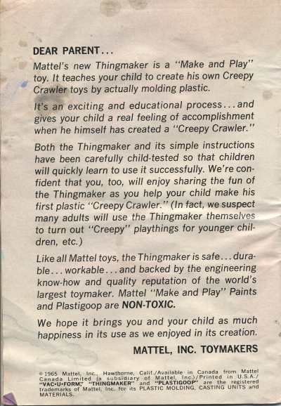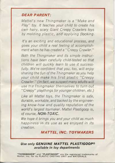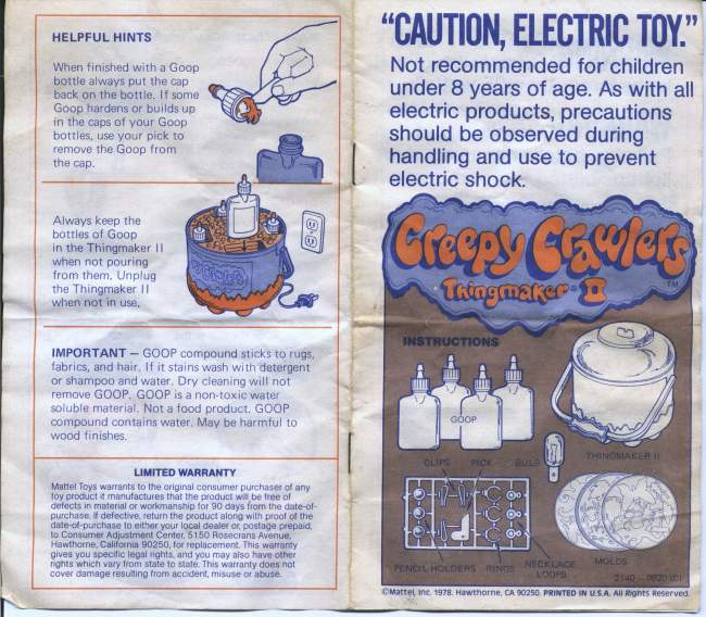 ccii01 | Creepy Crawlers Thingmaker II instructions page 1 | 1978 | Mattel |