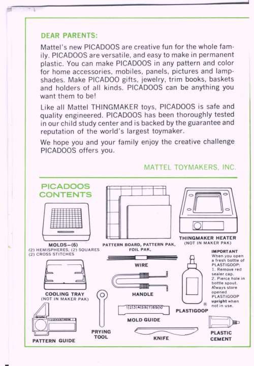 4501-0920 01 | Picadoos - How To Make - page 1 | 1967 | Mattel |
