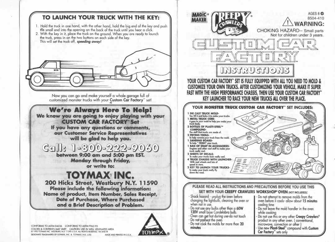 8504-410 02 | Custom Car Factory - Instructions back | 1995 | ToyMax |