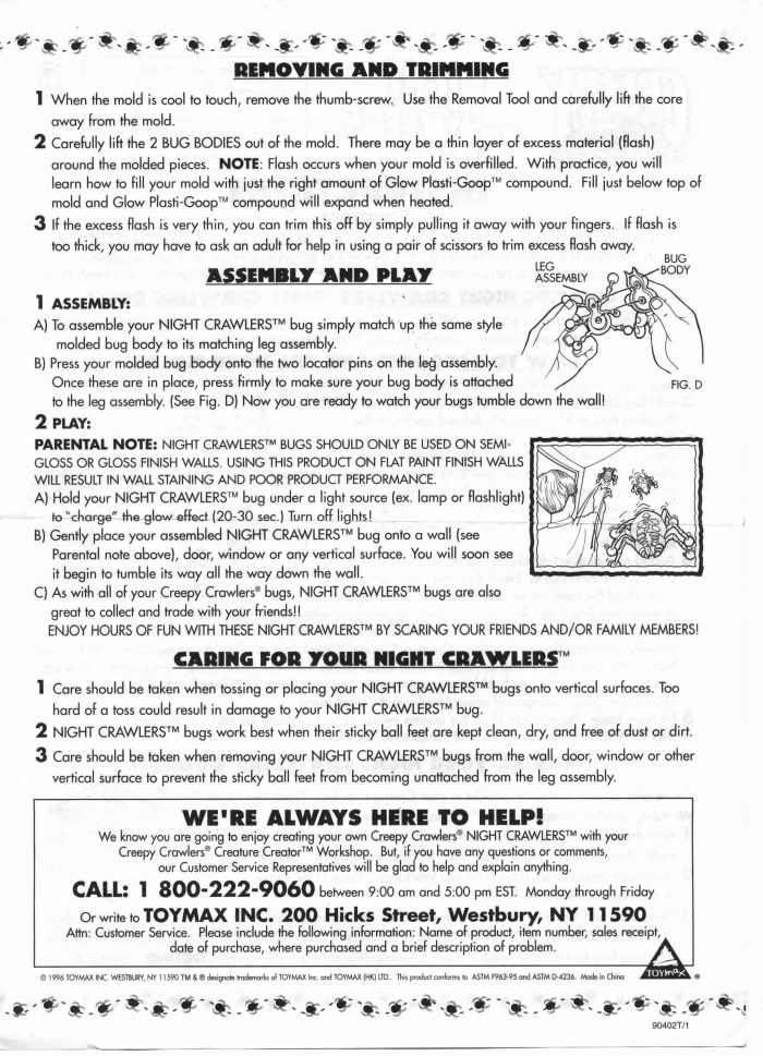 90402t1 02 | Night Crawlers - Instructions - back | 1996 | ToyMax |