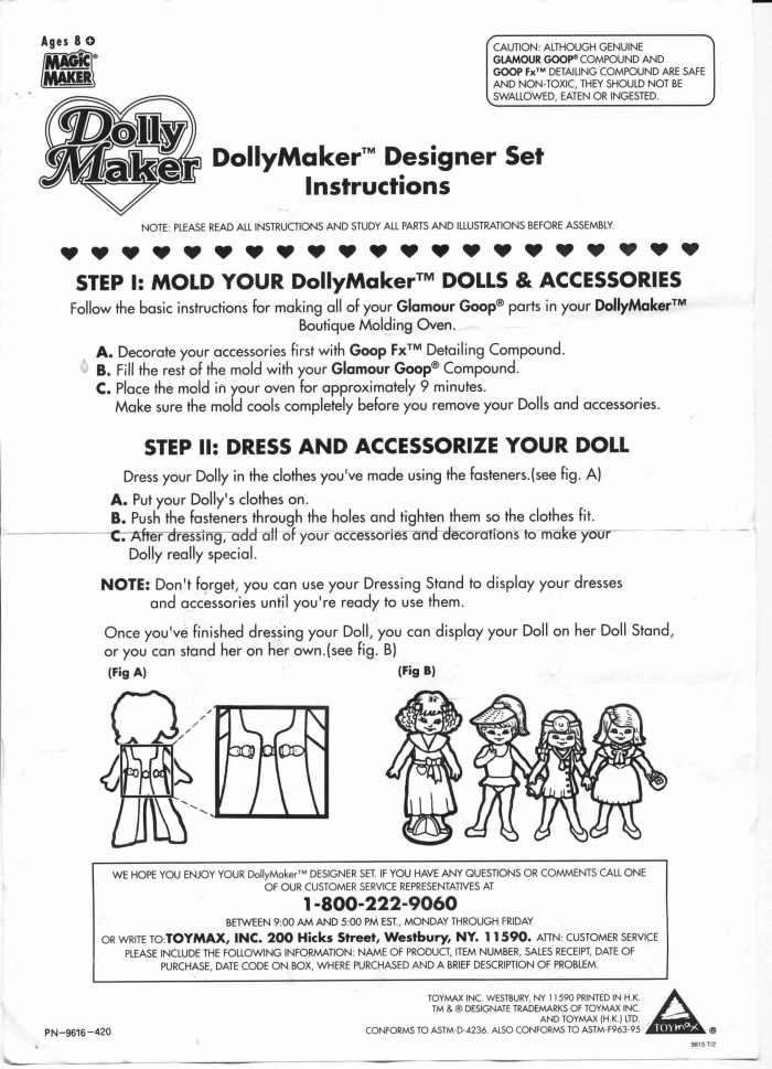 9615 t2 | Dolly Maker Designer Set - Instructions | 1995 | ToyMax |
