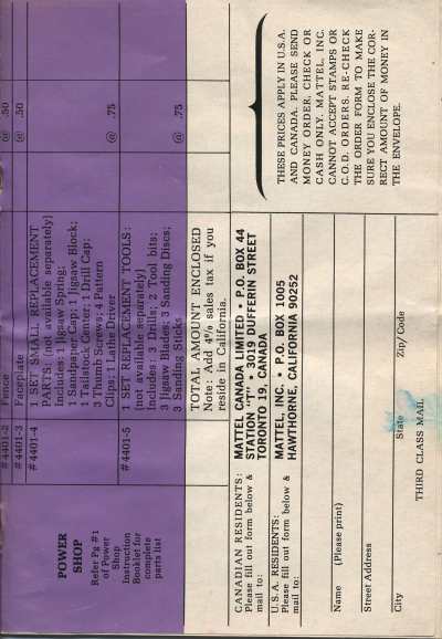 0001-1170 04 | Replacement Parts Order Form 04 | 1967 | Mattel |