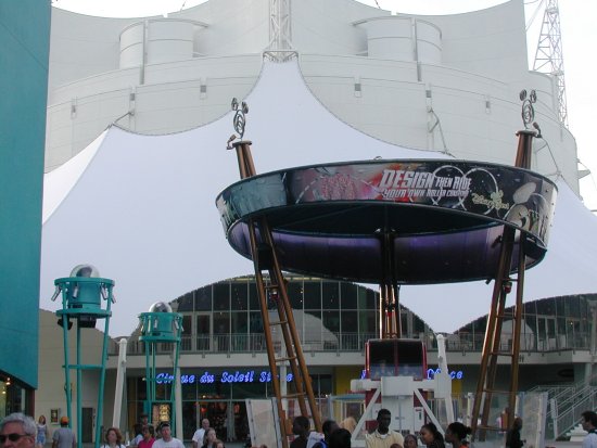 La Nouba starts out with a surrealistic scene followed by two performers rolling around in large metal rings. The stage opened up to make various levels and the performers rode bikes all over while doing lots of tricks. There was a high wire act and a trapeze act. A troupe of young girls juggled spools on sticks and strings. They threw the spools back and forth between them as they did all sorts of gymnastics. This was a VERY popular act. The strength act was a performer and two long red curtains hanging from the ceiling. He would grab the fabric and fly around the theater. There was a chair balancing act. The trampoline act was amazing (actually all of the acts were amazing). The stage opened up to reveal huge trampolines. Other portions rose up to let buildings rise up. The performers were able to be anywhere on the buildings by controlling their bounce. I can't really describe this but it was amazing.