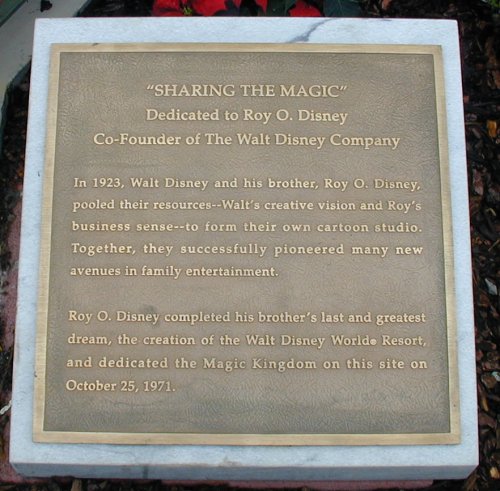 The tour started at the new statue of Roy Disney. Here is a picture of the statue and the plaques.