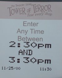 It was about 1:30pm and all of the Fast Passes for the day had already been given out! Even though there were eight of us we The thing we couldn't figure out was that the stand-by line (which was reported as been many times longer than the single line) seemed to breeze right past us. decided to try the single rider line. It was about a 30 minute wait. Another strange thing is that the only people that seem to be allowed into the indoor queue area are FastPass holders. And very few of them are in there at one time. This means that the indoor queue is almost empty. This is odd since they put so many interesting things in that queue to look at. I don't think anyone sees that stuff now, they just walk right by it to get to the ride.