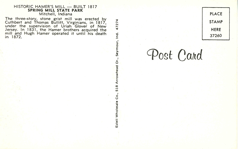 ![]() Historic Hamer Mill - built 1817 - Spring Mill State Park 37260 Estell Wholesale Co | ||