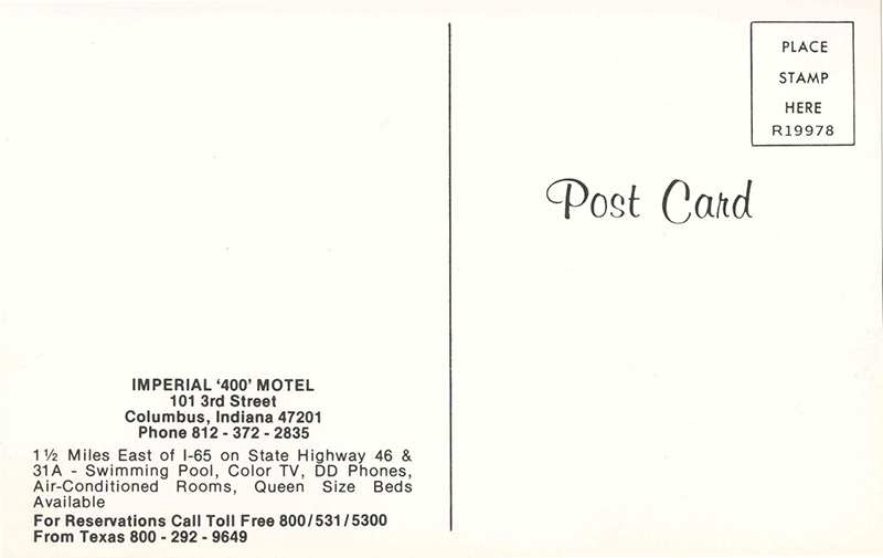 ![]() Imperial 400 Motel Columbus, Indiana R19978 | ||