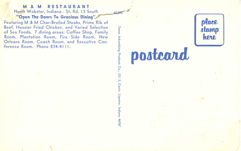![]() M & M Restaurant North Webster, Indiana 60,093 Tower Advertising Products Co | ||