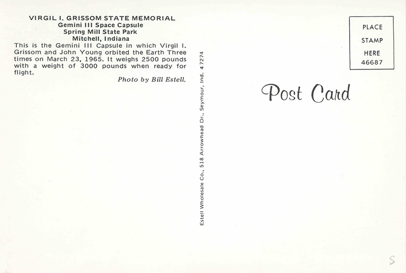 Virgil I Grisson State Memorial, Indiana Spring Mill State Park Mitchell, Indiana - Gemini III Capsule