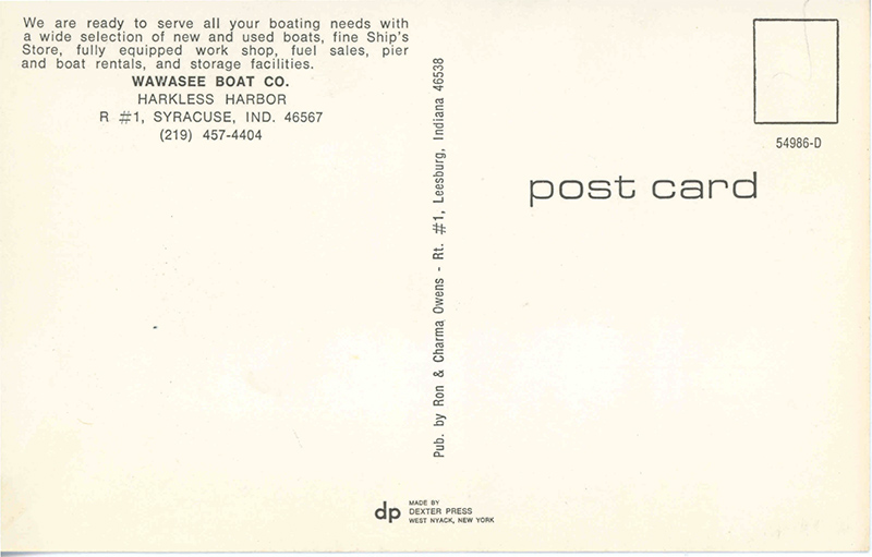 ![]() Wawasee Boat Co Syracuse, Indiana 54086-D Dexter Press | ||