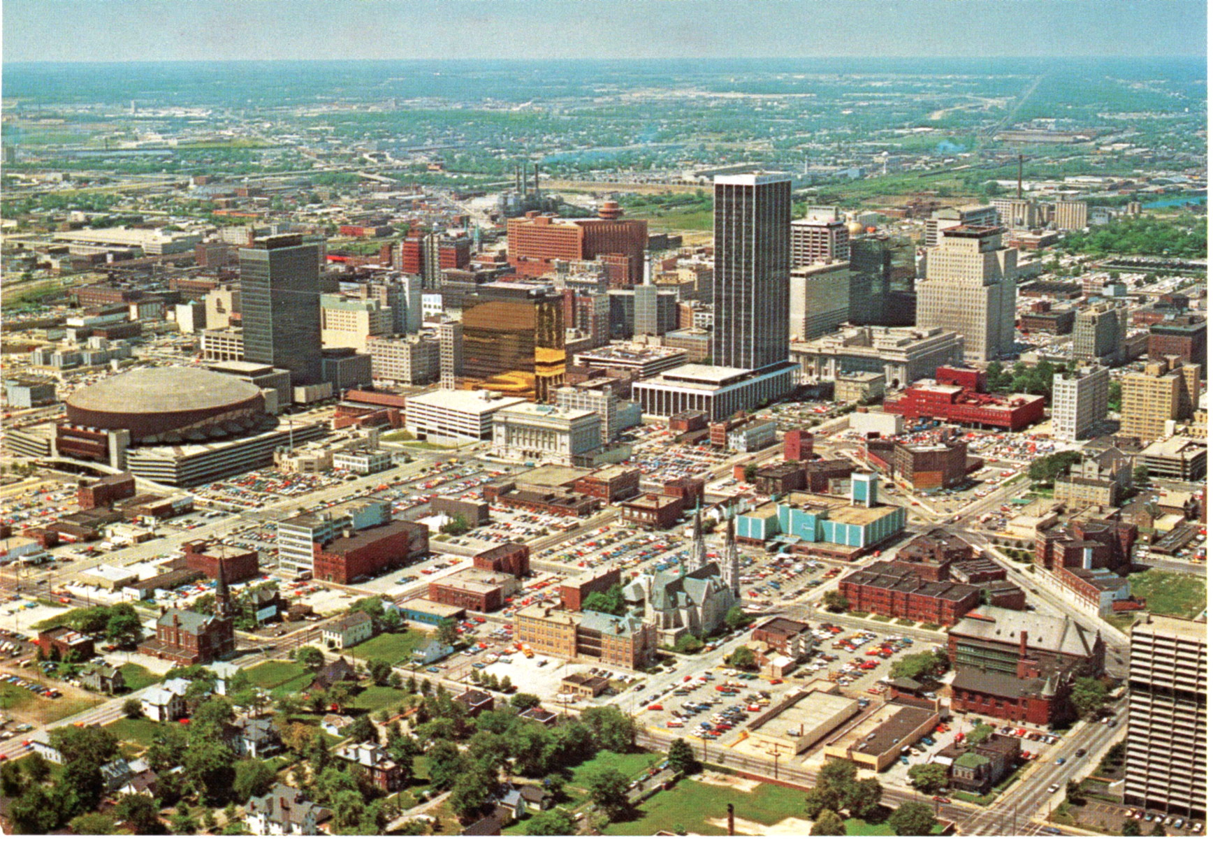 Indianapolis, Indiana - This aerial view highlights the many new buildings.. City County, Sears, Market Square Arena