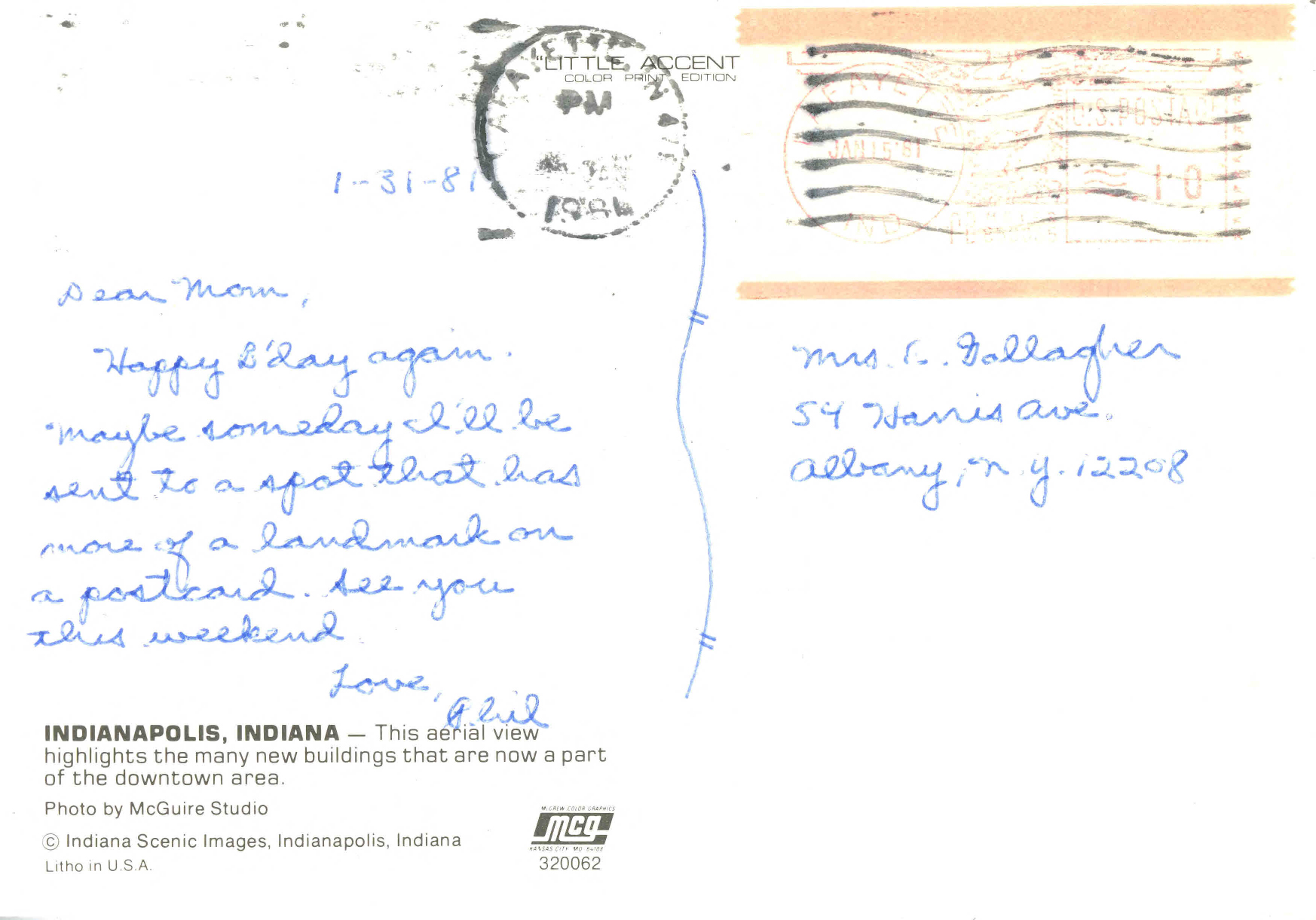 Greetings from Indianapolis Indiana