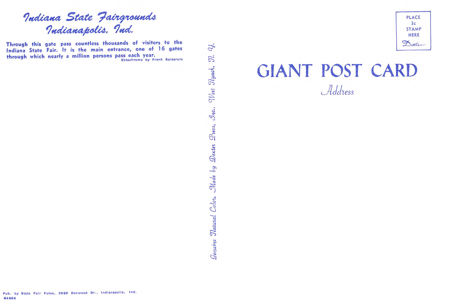 Indiana State Fairgrounds, Indianapolis, Ind. Through this gate pass countless thousands of visitors