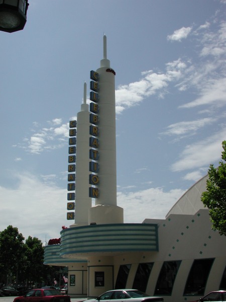 No hot and smokey theme parks today. At about 11 we checked out of the motel and drove to Celebration. We parked by the lake and bought pins at the Celebration Store.