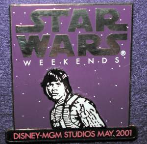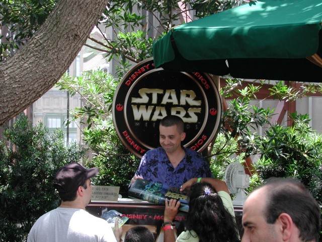 Friday May 25, 2001 Our plane landed around 11:20am. We got the rental car and headed straight for MGM. We walked to the Star Tours area and found a cast member sitting at a table marked Event Signup. We asked what events there were and she said the only event to sign up for is the Star Wars Trivia Contest. She also said that the contest for Friday filled up when the park opened. We asked about this weekend's stars and she said they were signing autographs around the corner. To get an autograph you needed a wristband. The wristbands were all gone as soon as the park opened! She recommended coming back Sunday because the attendance would be much less. We decided to try tomorrow, Saturday, and arrive about 7:30am. The park opens at 9. We headed over to Tatooine Traders to get the limited edition pins.