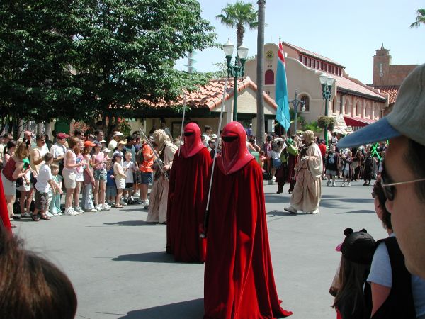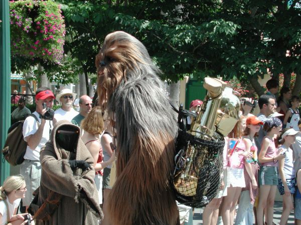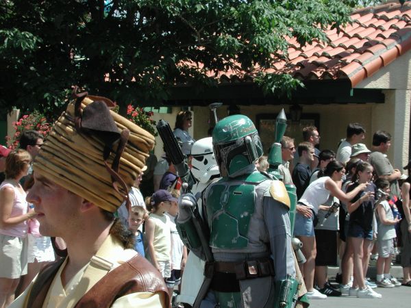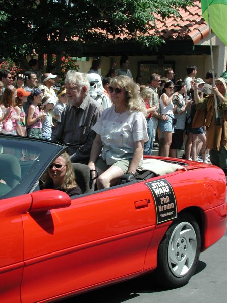 The Legends of the Force: A Star War Celebrity Motorcade started at 11:15. They started at the main gates and came up Hollywood Boulevard. Phil Brown (Uncle Owen) and Mike Quinn (Nien Nunb) rode in cars. Lots of Star Wars characters walked along.