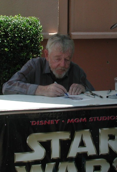 Gates opened at 8:30 and we walked toward the Star Tours area. The park was still roped off by the 50's Prime Time Cafe. We could see another roped off area by the boat restaurant, Min and Bill's Dockside Diner. At 9am they removed the rope barriers and quickly walked us to the wristband lines. The cast members stayed in front keep people from running. There were two wristband lines, one for Uncle Owen and one for Nien Nunb. We got in line for Uncle Owen first and got a wristband number around 55. We heard that there are about 100 bands for each of the two hour-long autograph sessions for each actor. After getting the first wristband we ran over to Nien Nunb's line and just missed getting in to the first session. We got the first bands for the second session, but we later found out that the cast member must have handed us the LAST wristbands from the second session instead of the first one. We found this out when we returned for the second session and found that our numbers put us at the very back of the line! We rode on Star Tours and then had breakfast at the ABC Commissary at 10am.