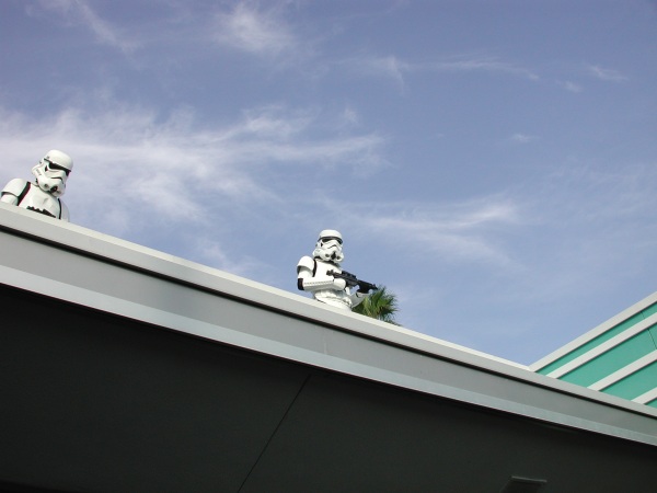 At about 7:15am they started the Star Wars music and Storm Troopers came out and did a "pre-show". They went up on the roof of the entrance and pretended to be trying to keep us away.