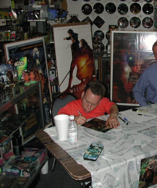 It was so hot that we went back to motel to cool off. At 7:30 we went back to the Sci-Fi World store for an autograph of Warwick Davis.